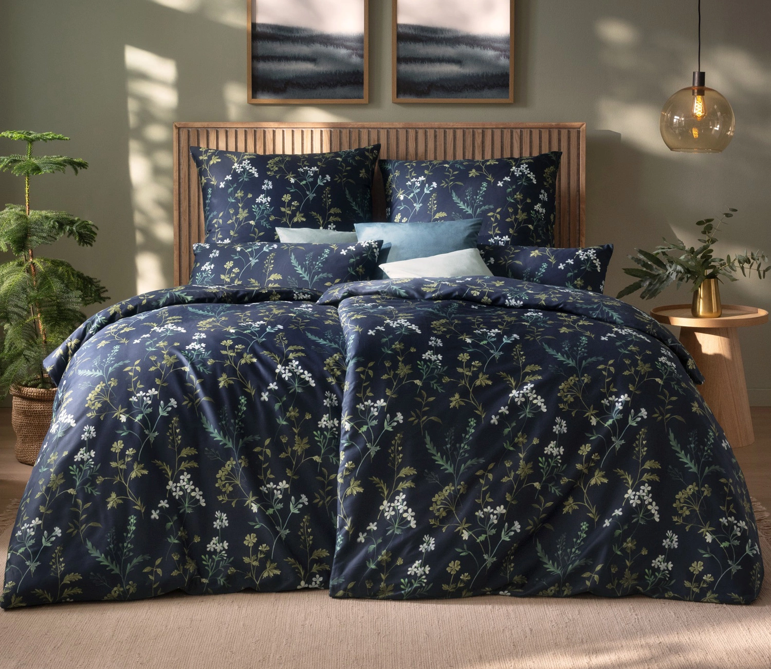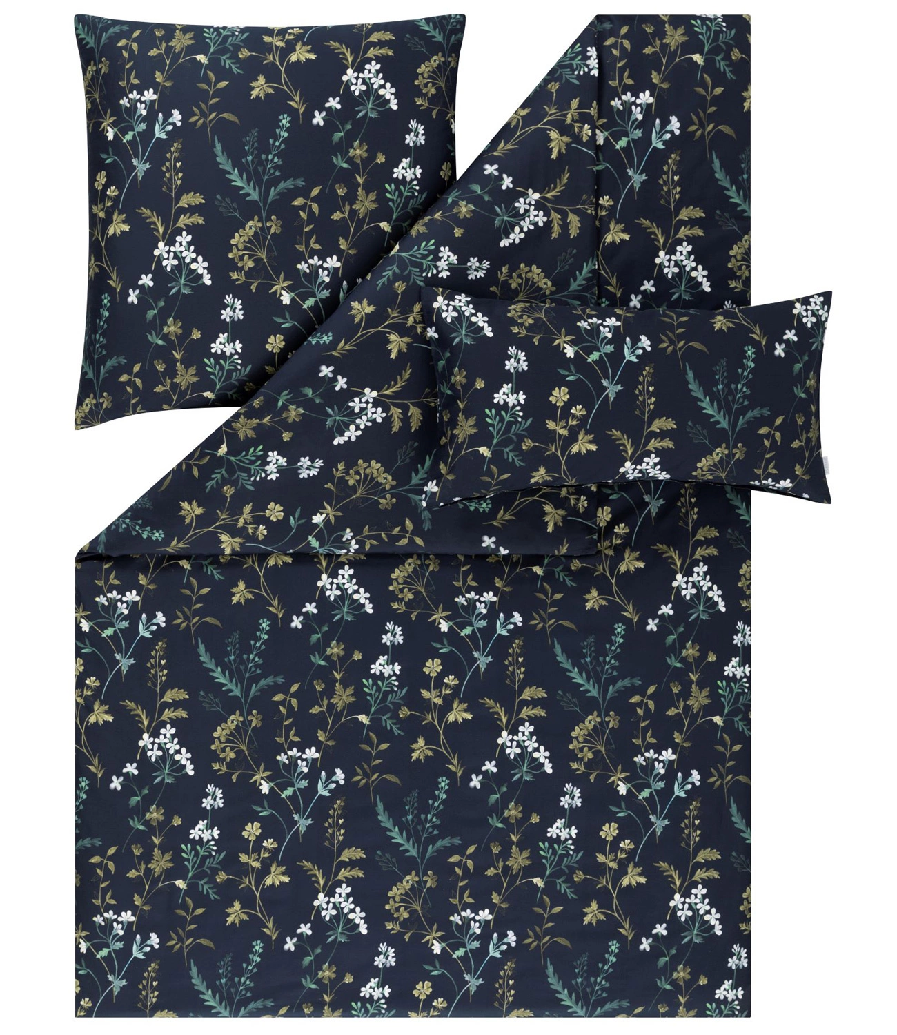 - Granatowa pościel satynowa Tessa 7982 zachwyca połączeniem lekkości i wyrafinowanej głębi. Na ciemnym tle rozkwitają polne kwiaty w tonach zieleni i limonki, tworząc wzór, który wprowadza spokój i stylowy charakter. Tkanina z merceryzowanej bawełny.
