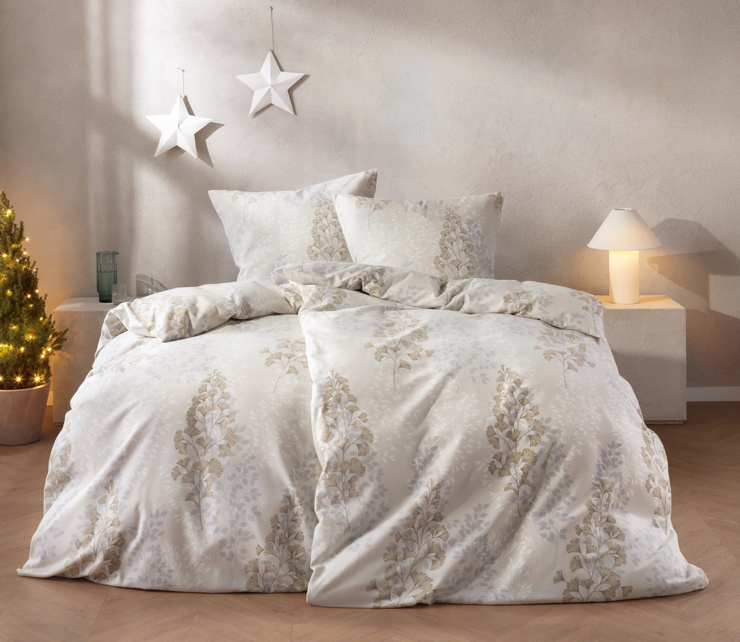 Pościel flanelowa premium - Merano 5475-230 marki Estella. Roślinny wzór w naturalnym kolorze. Wykonana z najwyższej jakości flaneli premium, ze 100% bawełny. Idealna na jesienno-zimową porę roku. Aksamitnie miękka, wyjątkowo przyjemna w dotyku. Od tradycyjnej flaneli, wyróżnia ją wyższa gramatura i jeszcze bardziej przyjemny dotyk.