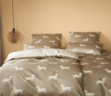 - Pościel Dogs 24540-7 z motywem jamnika to idealny wybór dla miłośników czworonogów. Odcienie beżowo-kremowe.Wykonana z miękkiej satyny Comfort, 100% czesanej bawełny o najdłuższych włóknach, z praktycznym zamkiem błyskawicznym.