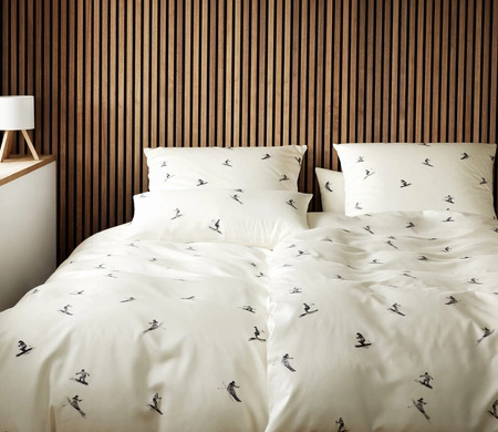 - Pościel Mono Ski 24549-9 dla miłośników białego szaleństwa. Narciarze oraz snowboardziści na kremowym tle. Wykonana z miękkiej satyny Comfort, 100% czesanej bawełny o pięknym połysku i jedwabistym dotyku. Praktyczne zapięcie na zamek błyskawiczny.