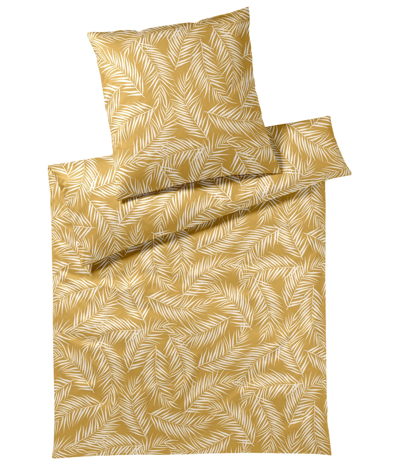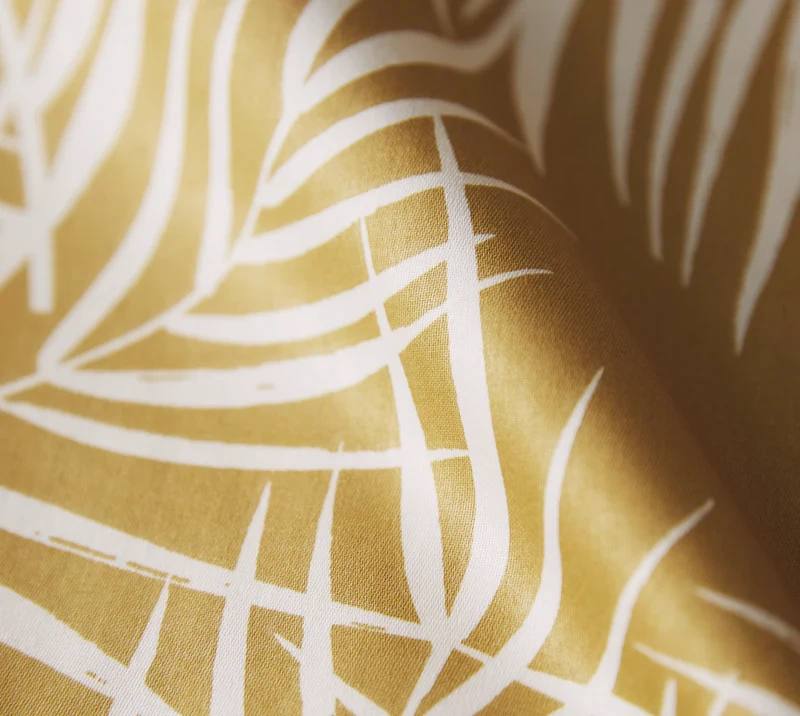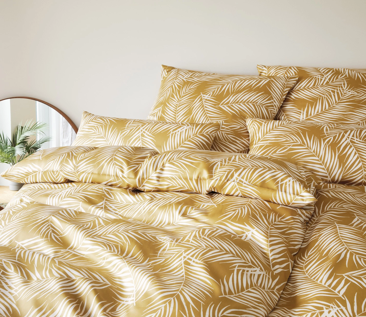 Pościel Maison Leaves 24551-3 zachwyca roślinnym wzornictwem inspirowanym kształtem liści palmowych. Kolor złoty. Subtelny motyw wprowadza do wnętrza atmosferę spokoju i lekkości. Wykonana z wysokiej jakości satyny typu Comfort zapewnia przyjemne doznania podczas snu oraz elegancki wygląd. Praktyczne zapięcie na zamek błyskawiczny ułatwia zmianę pościeli.