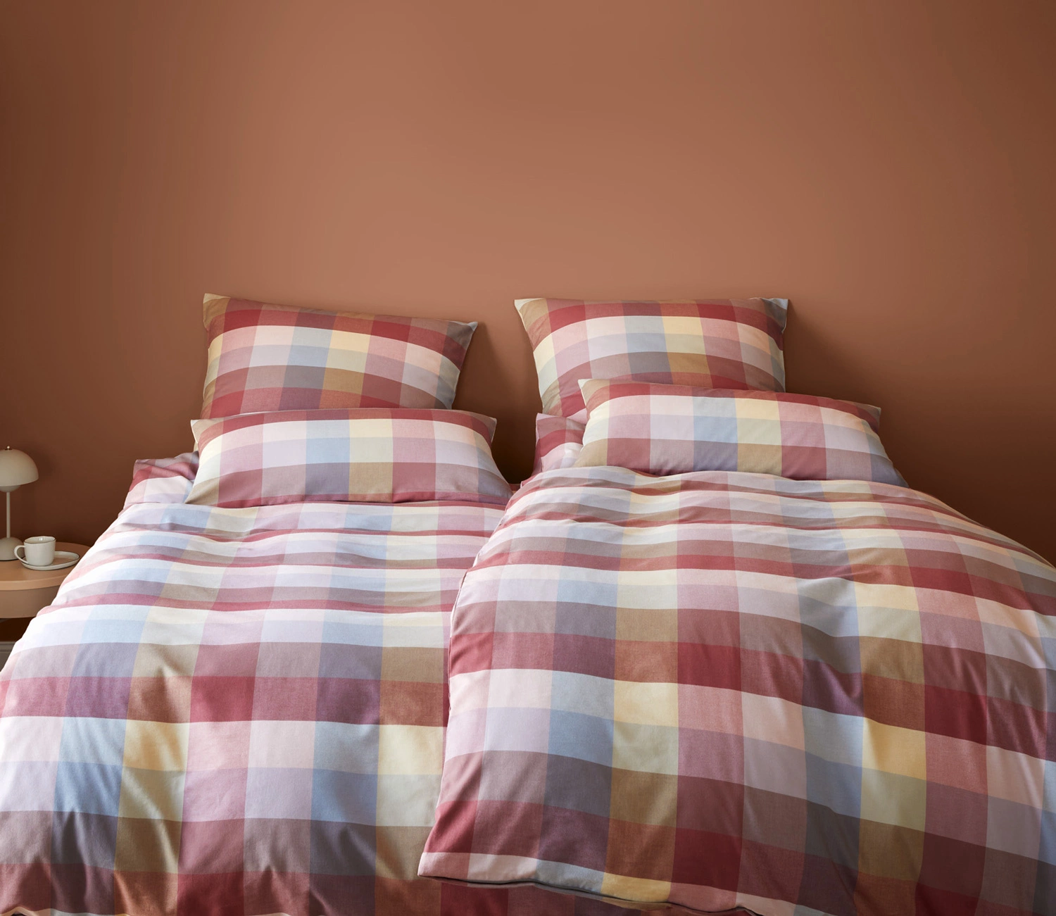 Pościel Hamilton 26014-1 przyciągają wzrok eleganckim wzorem w cieniowaną kratę. Odcienie koloru czerwonego, żółtego i niebieskiego. Miękka flanela z bawełny zapewnia przytulne ciepło, wyjątkowy komfort i delikatność w dotyku – idealna na chłodnie noce. Zapinana na zamek błyskawiczny.