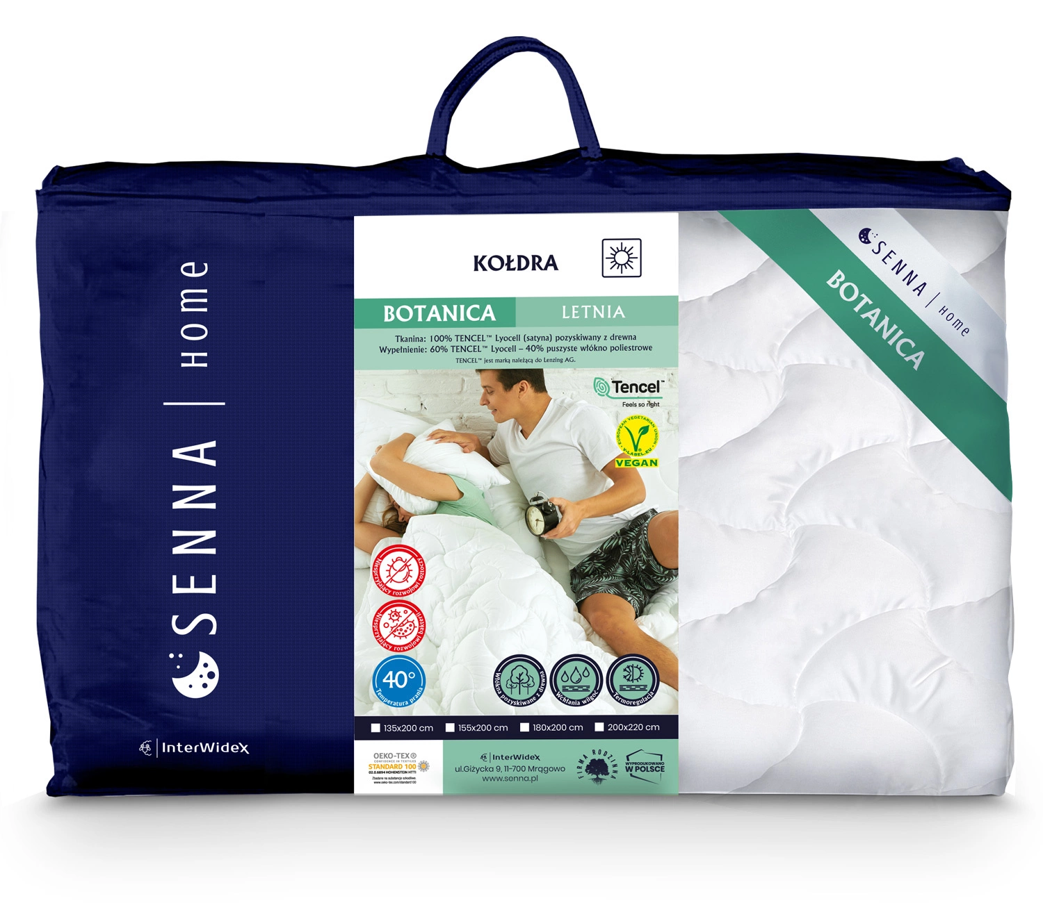 Senna Botanica Light to lekka kołdra zaprojektowana specjalnie na ciepłe noce. Wykonana z innowacyjnych włókien TENCEL™ Lyocell, wyróżnia się znakomitą przewiewnością, skutecznym odprowadzaniem wilgoci oraz naturalną regulacją temperatury.