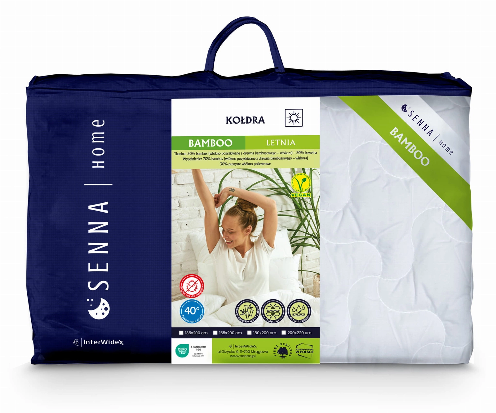 Senna Bamboo Light to miękka, przewiewna i komfortowa kołdra, stworzona z myślą o zdrowym śnie w trakcie upalnych nocy. Dzięki zawartości włókien bambusowych, znanych z doskonałych właściwości termoregulacyjnych, kołdra pomaga utrzymać przyjemny mikroklimat snu – suchy, świeży i wolny od nadmiaru wilgoci.