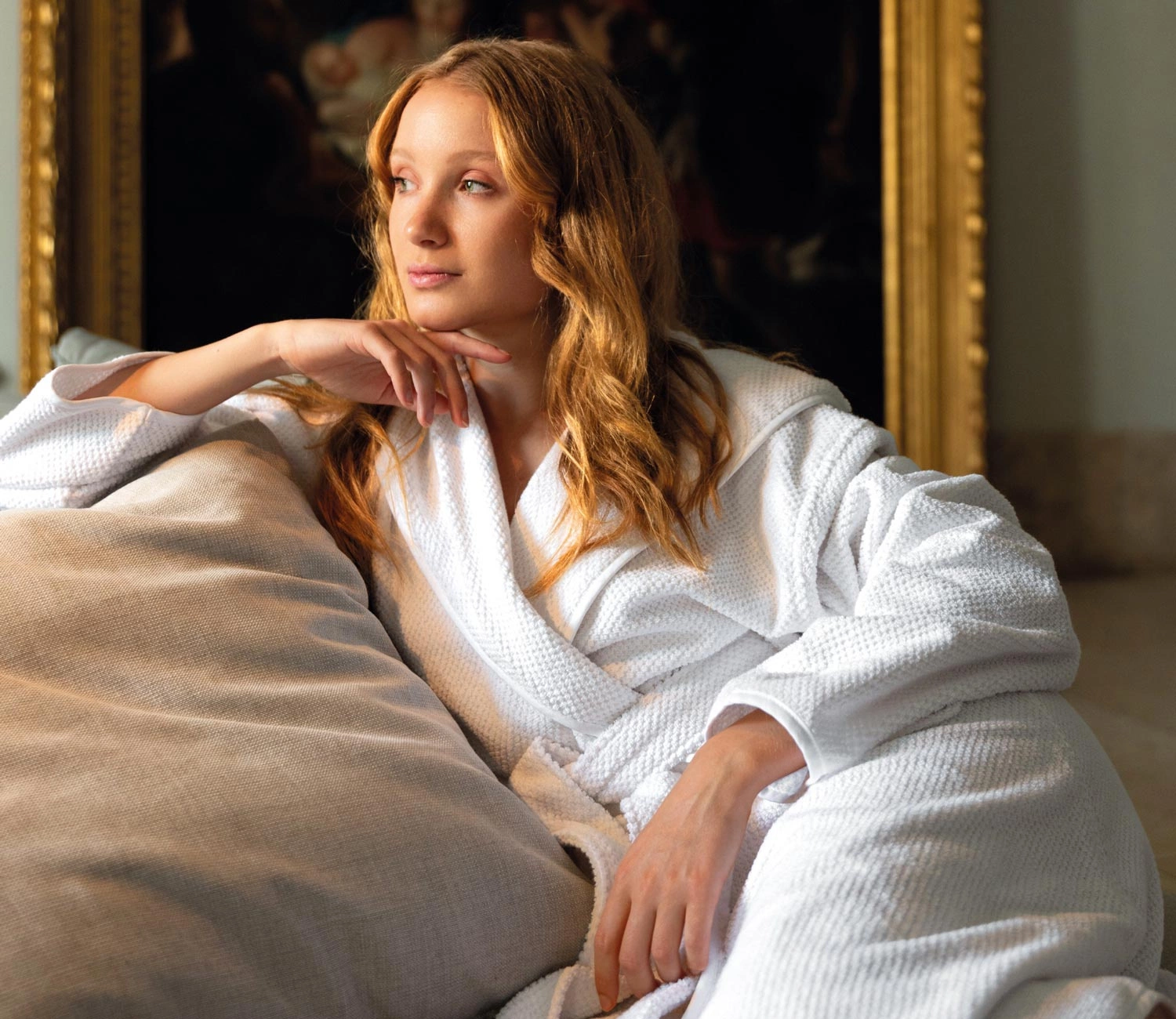 Zastosowanie wysokogatunkowej bawełny czesanej gwarantuje niezwykłą delikatność, trwałość i odporność na zużycie. Dzięki procesowi dekatyzacji i wstępnego prania szlafrok Bee Waffle wyróżnia się jeszcze większą chłonnością i miękkością, zachowując przy tym swój kształt i piękny wygląd przez długi czas.