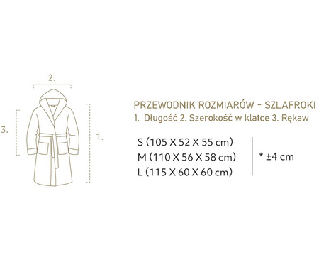 * Użytkowanie: Nie używaj szlafroka w pobliżu ostrych przedmiotów, które mogłyby spowodować jego uszkodzenie.