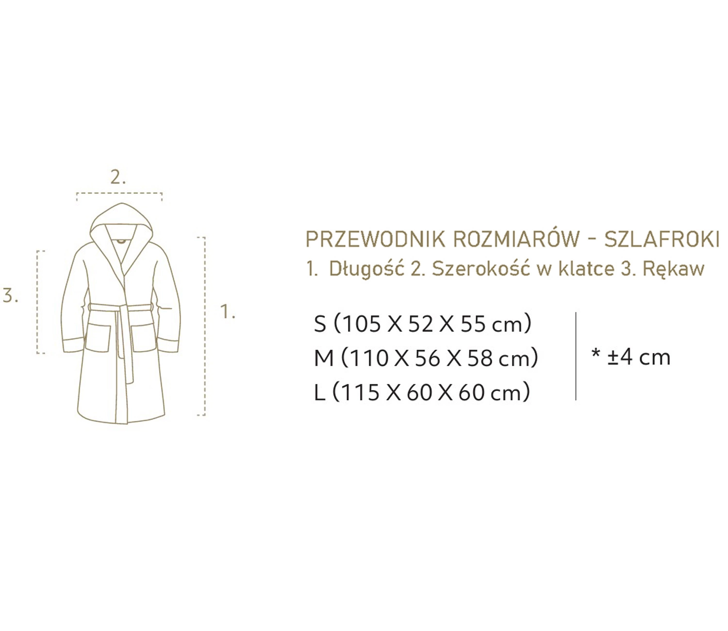 * Użytkowanie: Nie używaj szlafroka w pobliżu ostrych przedmiotów, które mogłyby spowodować jego uszkodzenie.