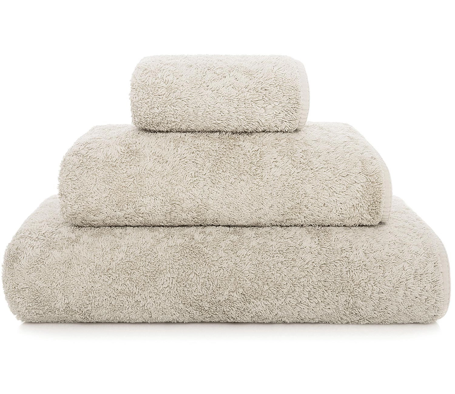 • Luksusowy ręcznik Graccioza Long Double Loop w kolorze beżowym, wykonany w 100% z egipskiej bawełny o wyjątkowo długich włóknach. Niezwykle miękki, chłonny i gęsty. Zaokrąglone rogi i podwójne obszycia gwarantują trwałość i perfekcyjne wykończenie.