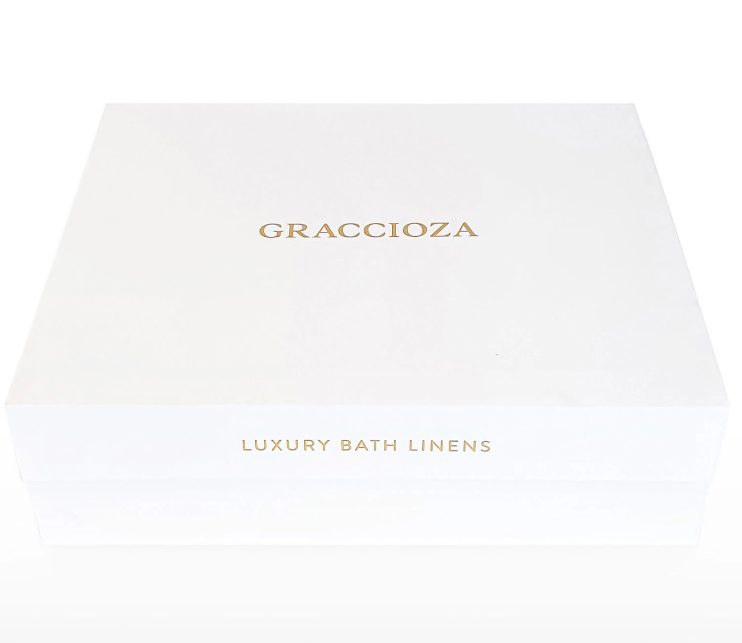 Luksusowy szlafrok Graccioza Long Double Loop pakowany jest w eleganckie pudełko prezentowe, co czyni go także wyjątkowym pomysłem na podarunek premium.