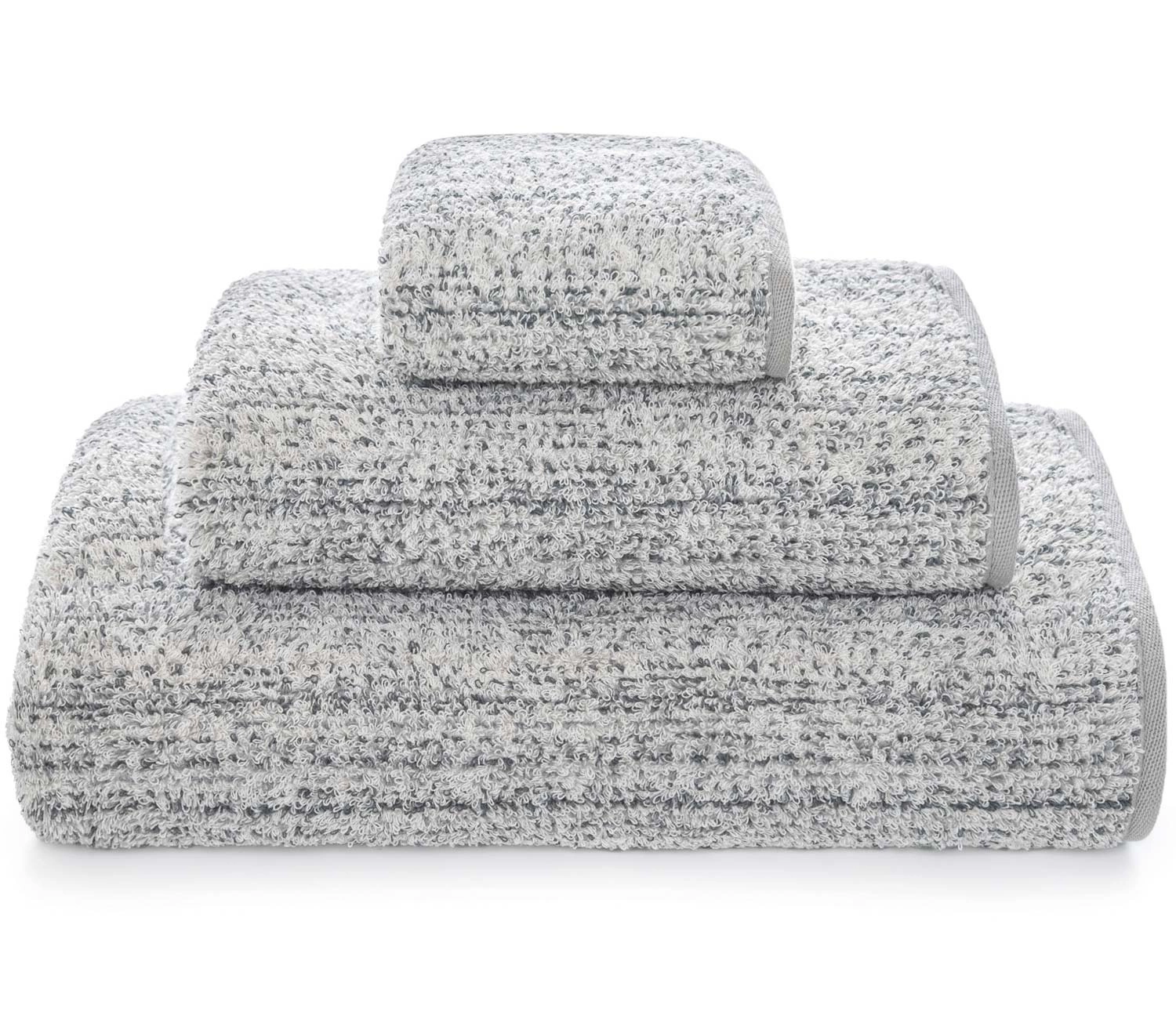 - Luksusowy ręcznik Graccioza Porto, wykonany w 100% z najwyższej jakości bawełny czesanej. Miękki, chłonny i trwały, wysoka gramatura 730 g/m². Subtelny wzór w delikatne, teksturowane paseczki w odcieniach szarości, zaokrąglone rogi i podwójne obszycia.