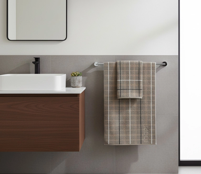 - Dodaj stylu swojej łazience z ręcznikiem bawełnianym JOOP! z kolekcji Contour Checked. Nowoczesny wzór w kratę w eleganckim odcieniu ciemnego beżu łączy wyjątkową miękkość z doskonałą chłonnością. Wykonany w 100% z najwyższej jakości bawełny.
