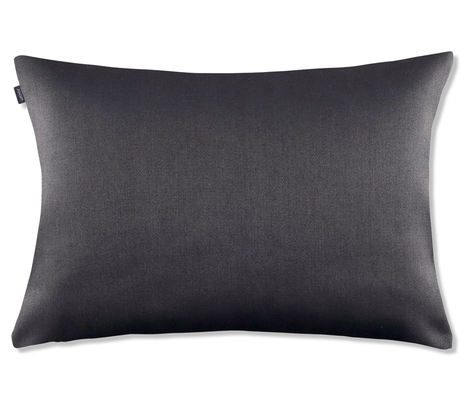 Poszewka ma antracytowy odcień melanżu, który doskonale harmonizuje z nowoczesnymi i minimalistycznymi wnętrzami w stylu quiet luxury. Jej unikalność tkwi w subtelnym, żakardowym wzorze Signature Stripes – geometryczne motywy (ikoniczne kółka JOOP!) są wkomponowane w poziomy pas, tworząc delikatnie uwypuklony (reliefowy) efekt. Ten efekt 3D sprawia, że poszewka przyciąga wzrok i nadaje jej luksusowej głębi.