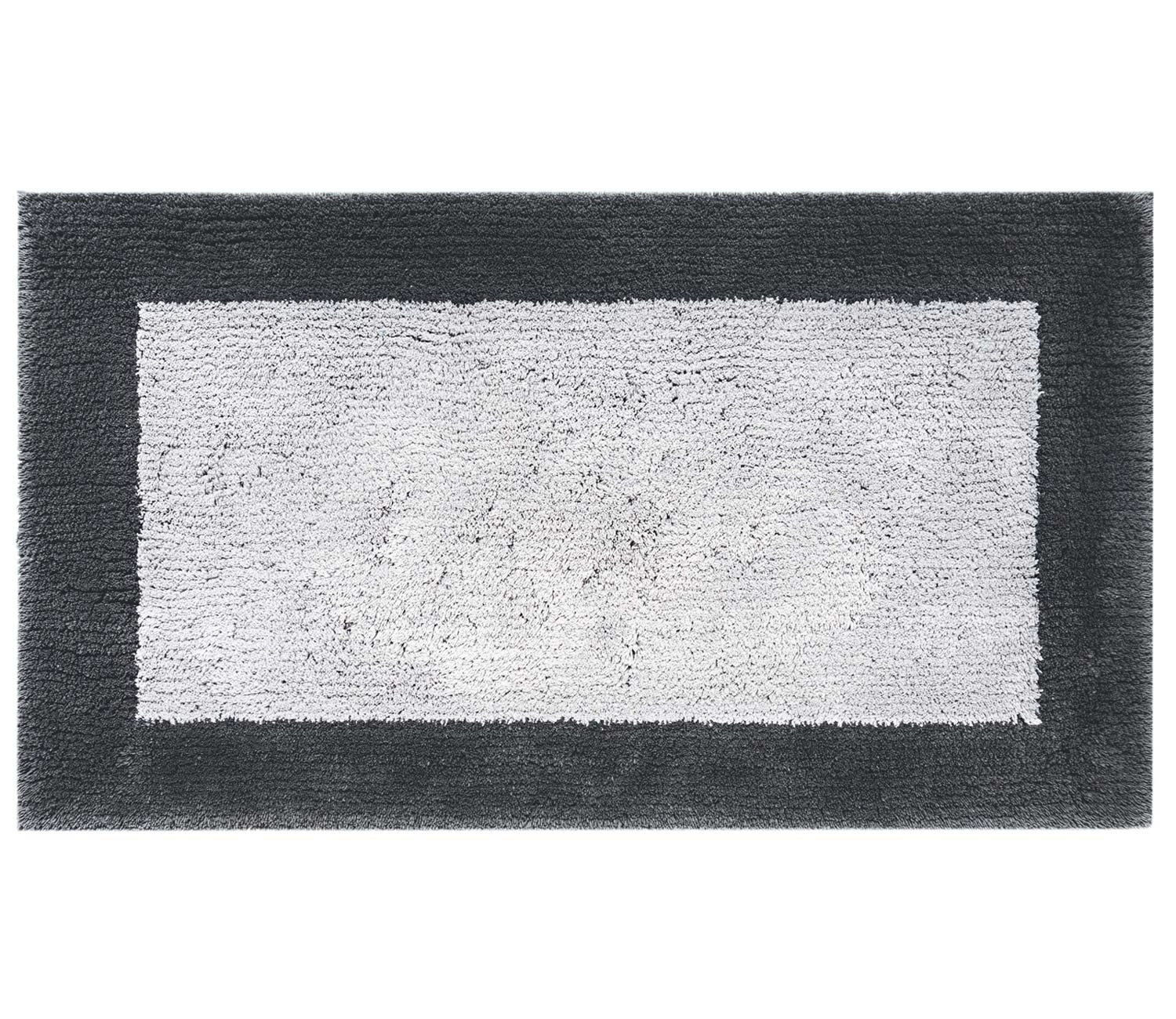 - Luksusowy dywanik łazienkowy Graccioza Bicolore w odcieniu szarości z delikatnym, grafitowym obramowaniem. Wykonany w 100% z najwyższej jakości bawełny czesanej, niezwykle miękki i komfortowy pod stopami. Wyposażony w antypoślizgowe silikonowe podłoże.