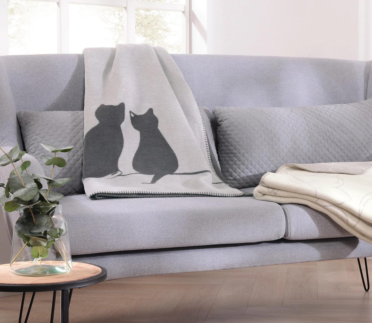 Koc Cute Cats od Cawö to połączenie najwyższej jakości wykonania z przytulnym komfortem – jest miękki, puszysty i niezwykle przyjemny w dotyku. Powstał w Niemczech z dbałością o każdy detal, a jego skład – mieszanka bawełny i włókien syntetycznych – sprawia, że jest trwały, oddychający i łatwy w pielęgnacji.