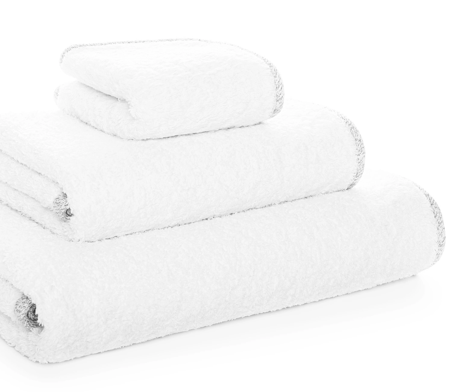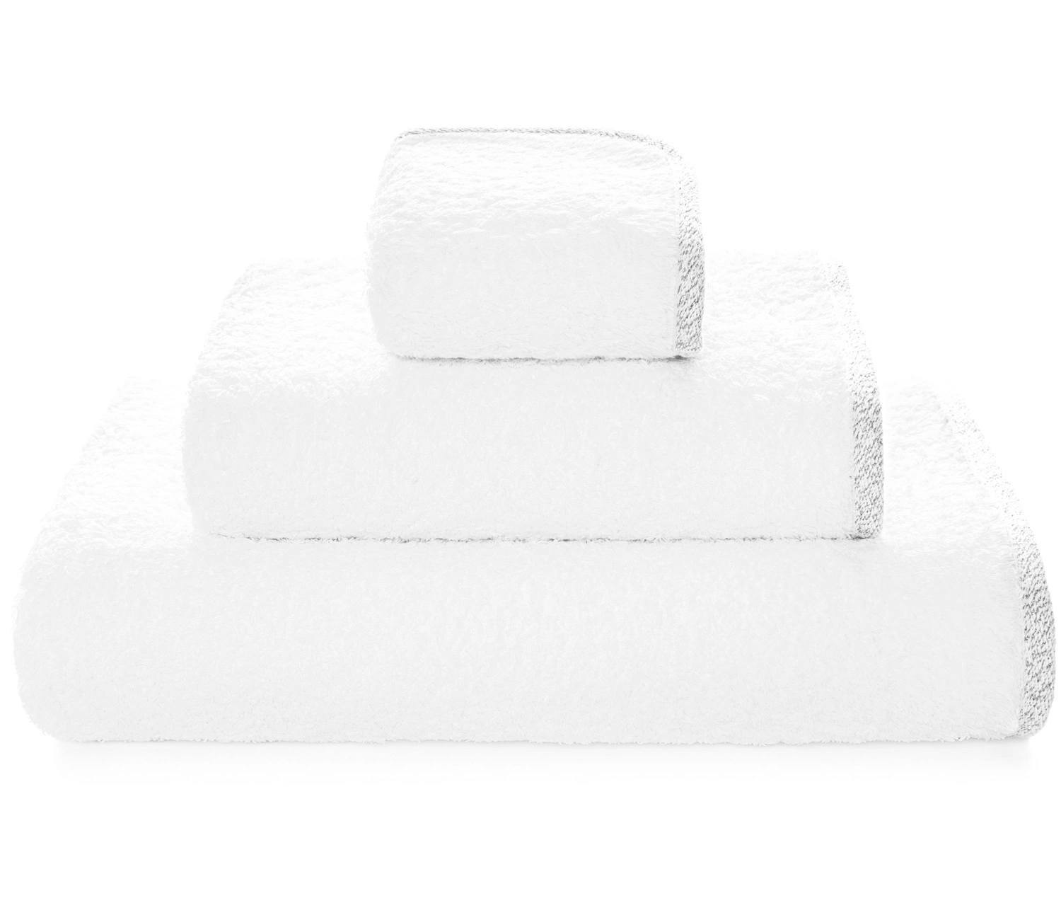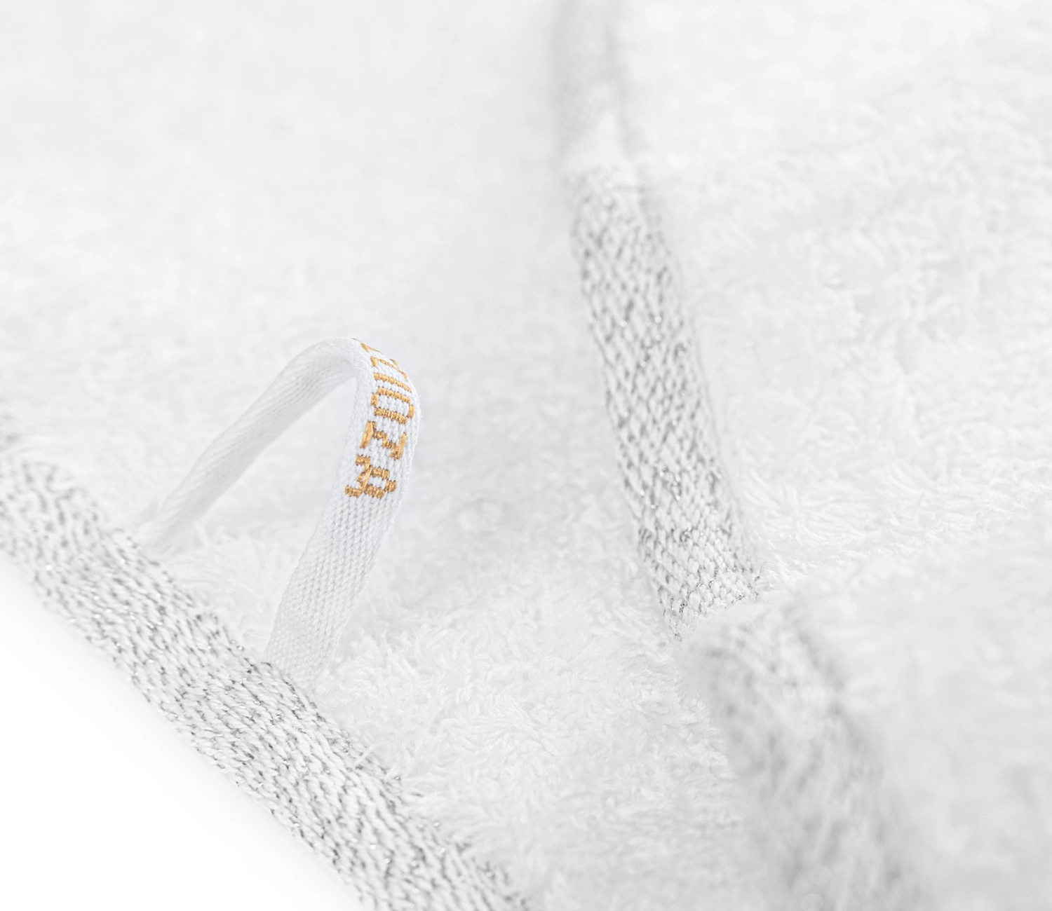- Luksusowy biały ręcznik Graccioza Parson z eleganckim, srebrnym obszyciem z błyszczącej taśmy Lurex. Wykonany w 100% z najbardziej pożądanej na świecie odmiany egipskiej bawełny Giza, niezwykle miękki, chłonny i trwały. Idealny do luksusowych wnętrz.