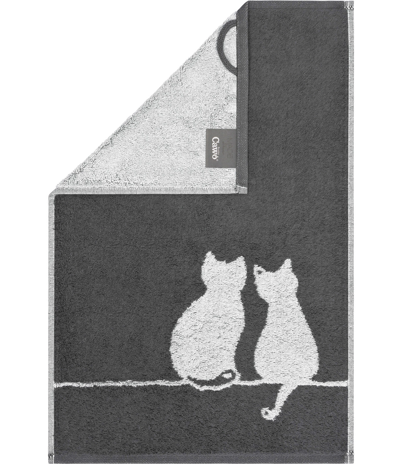 - Ręcznik Cawö Cute Cats. Niemiecka jakość, 100% wysokogatunkowa bawełna, bardzo miękka i wyjątkowo chłonna. Uroczy, dziany (nie drukowany) motyw dwóch kotów. Idealny do łazienki pełnej ciepła i stylu. Kolor szaro-antracytowy.