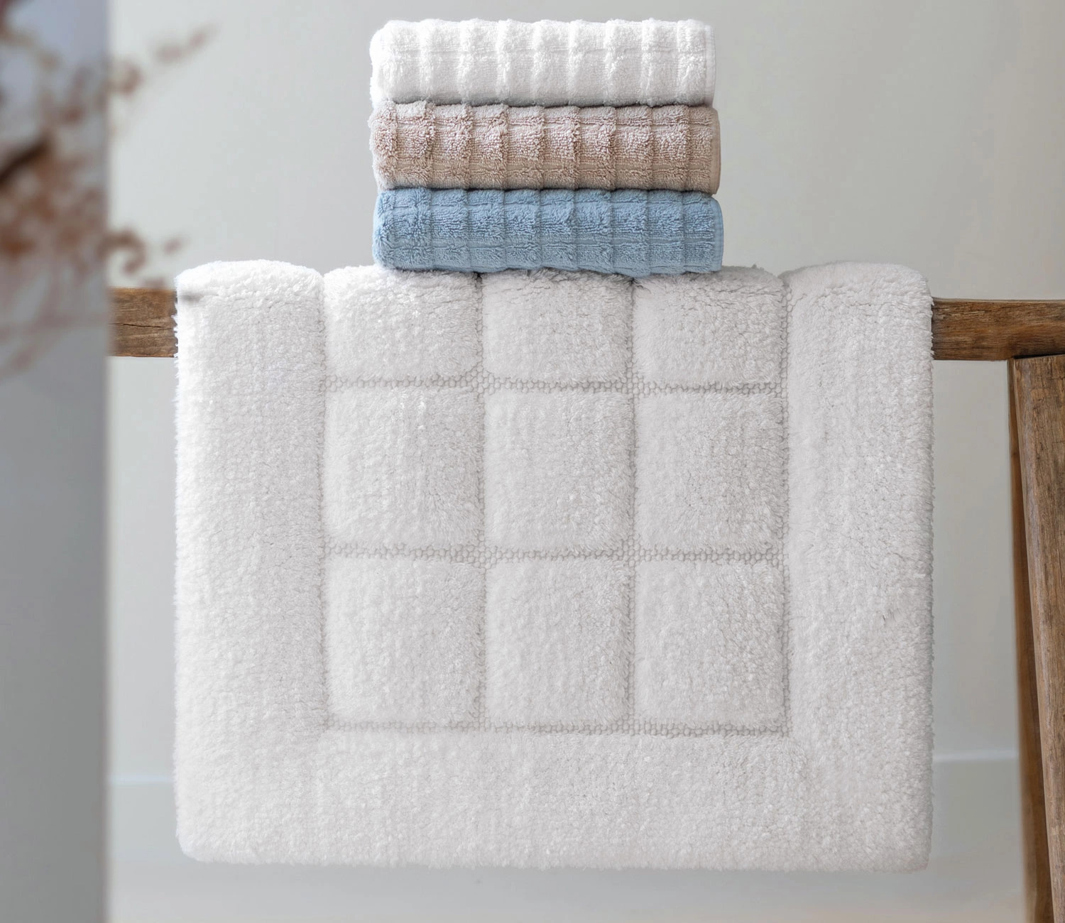 Model dywanika łazienkowego Heaven wyróżnia się unikalną strukturą Overwoven, która łączy w sobie dwie techniki: