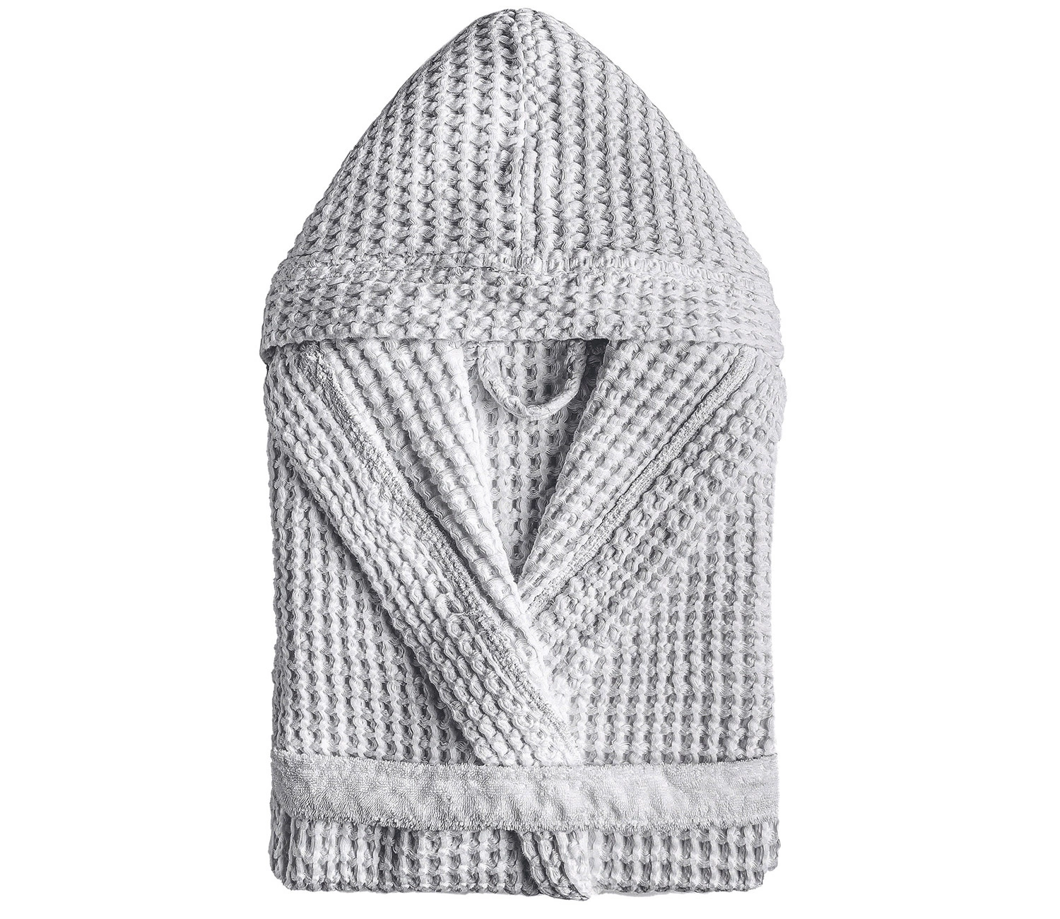 - Luksusowy szlafrok z kapturem Graccioza Aura w odcieniu szarym zachwyca miękkością, chłonnością i lekką strukturą waffle. Wykonany z najwyższej jakości bawełny, zapewnia wyjątkowy komfort i elegancję. Zapakowany w luksusowe pudełko prezentowe.