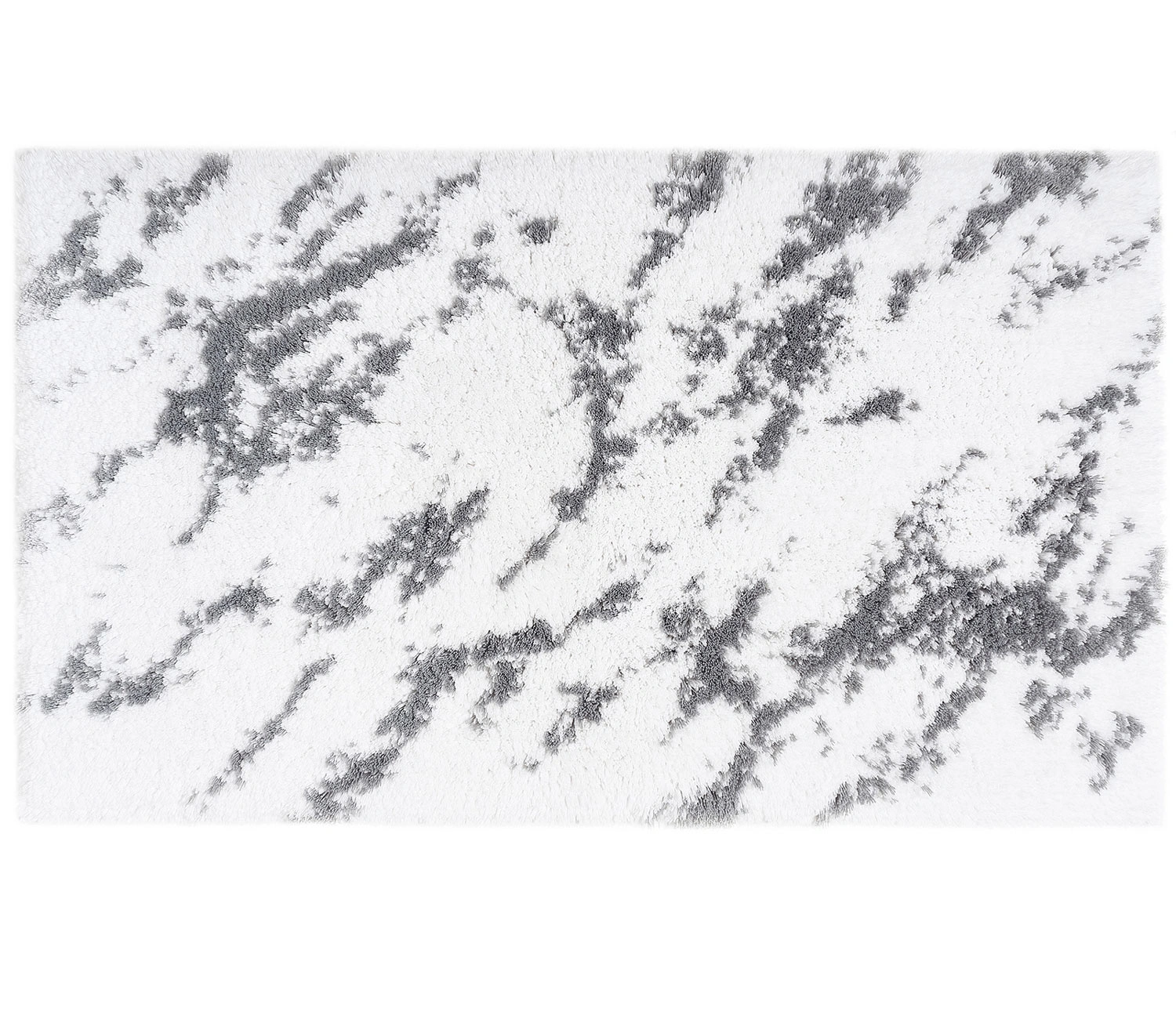- Dywanik łazienkowy Graccioza Mabel w bieli z subtelnym, marmurowym wzorem w odcieniu szarości to połączenie nowoczesnej estetyki i miękkości. Wykonany z wysokiej jakości bawełny czesanej, zachwyca strukturą, chłonnością i luksusowym wykończeniem.