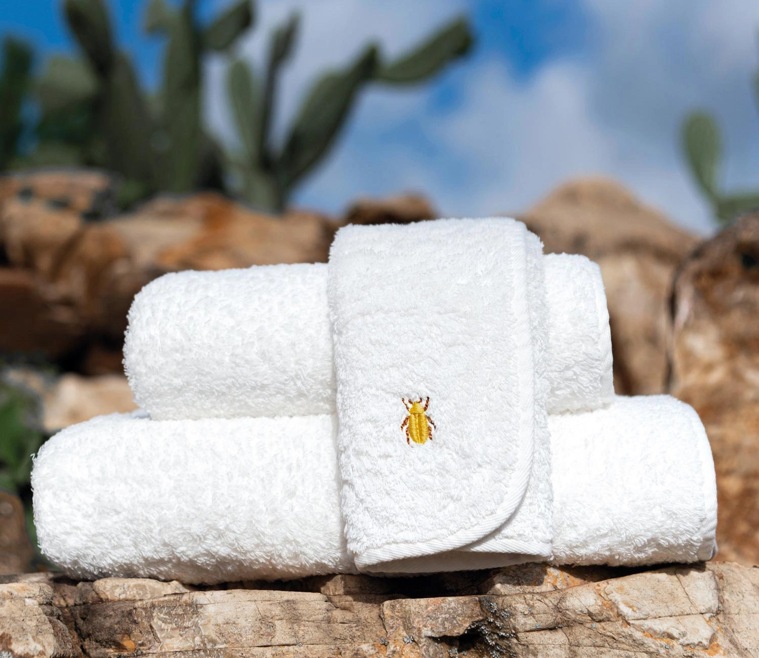 Minimalistyczny haft z motywem chrząszcza umieszczony w rogu ręcznika to elegancki, dyskretny akcent, który nadaje ręcznikowi Graccioza Beatle unikalnego charakteru. To detal, który odróżnia produkt luksusowy od standardowego i podkreśla dbałość marki o estetykę.