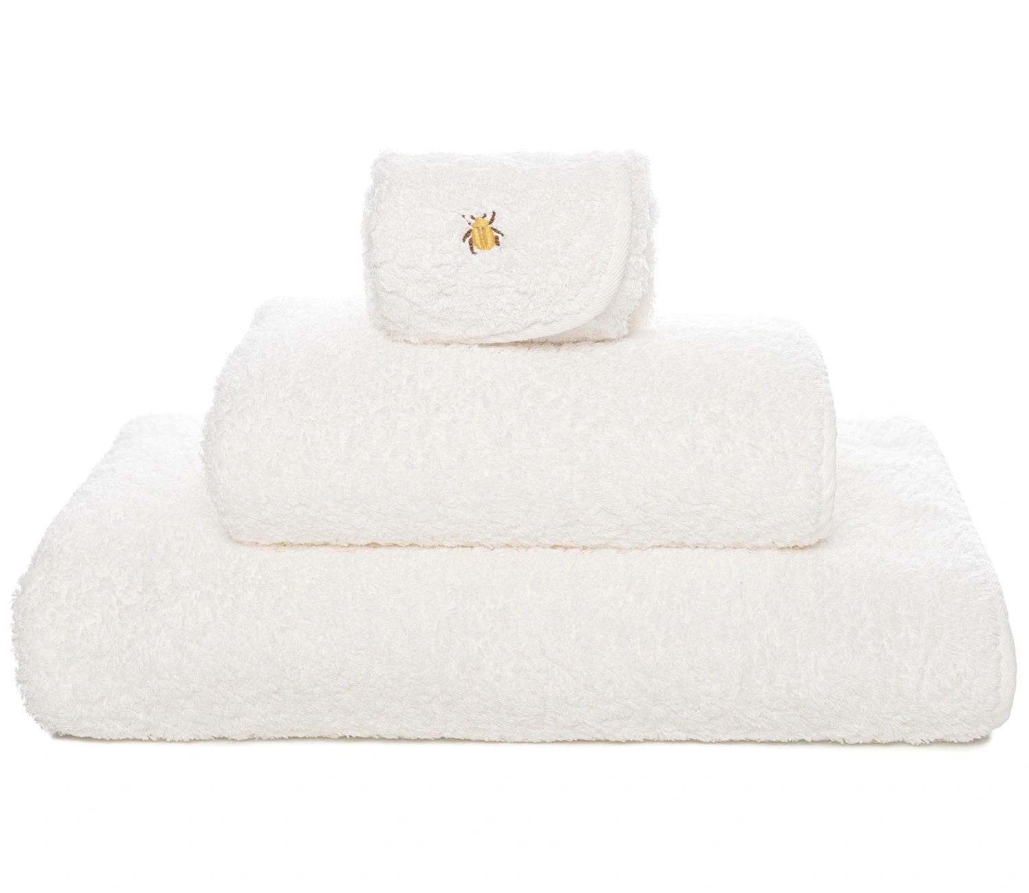 • Luksusowy ręcznik Graccioza Beatle wykonany w 100% z egipskiej bawełny Giza o wysokiej gramaturze 800 g/m². Niezwykle miękki, puszysty i chłonny, z subtelnym haftowanym detalem chrząszcza, który nadaje mu wyjątkowego, eleganckiego charakteru.