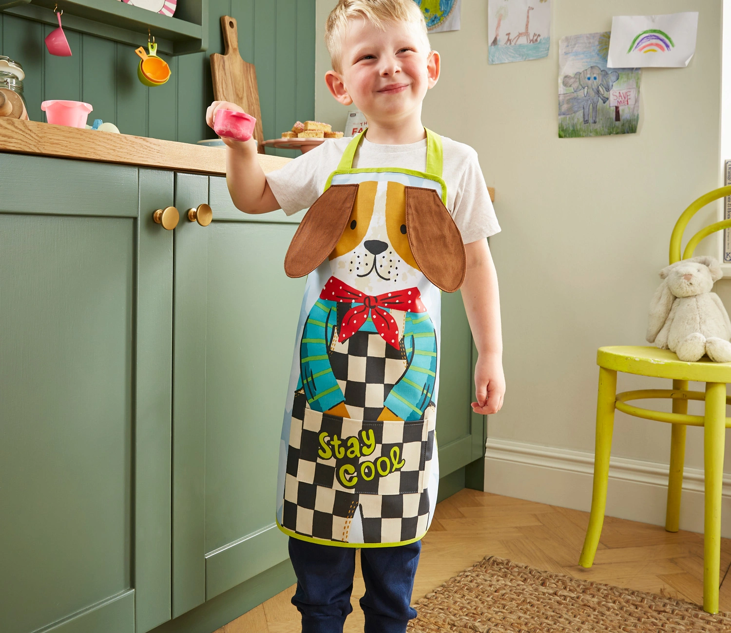 - Dziecięcy fartuszek Dexter Dog od Ulster Weavers z uszami 3D! Wykonany z bawełny z powłoką ułatwiającą czyszczenie. Wytrzymały, radosny i idealny dla małych kucharzy. Idealny dla dzieci od 4 do 8 lat. Wysokość 55 cm, szerokość 45 cm.