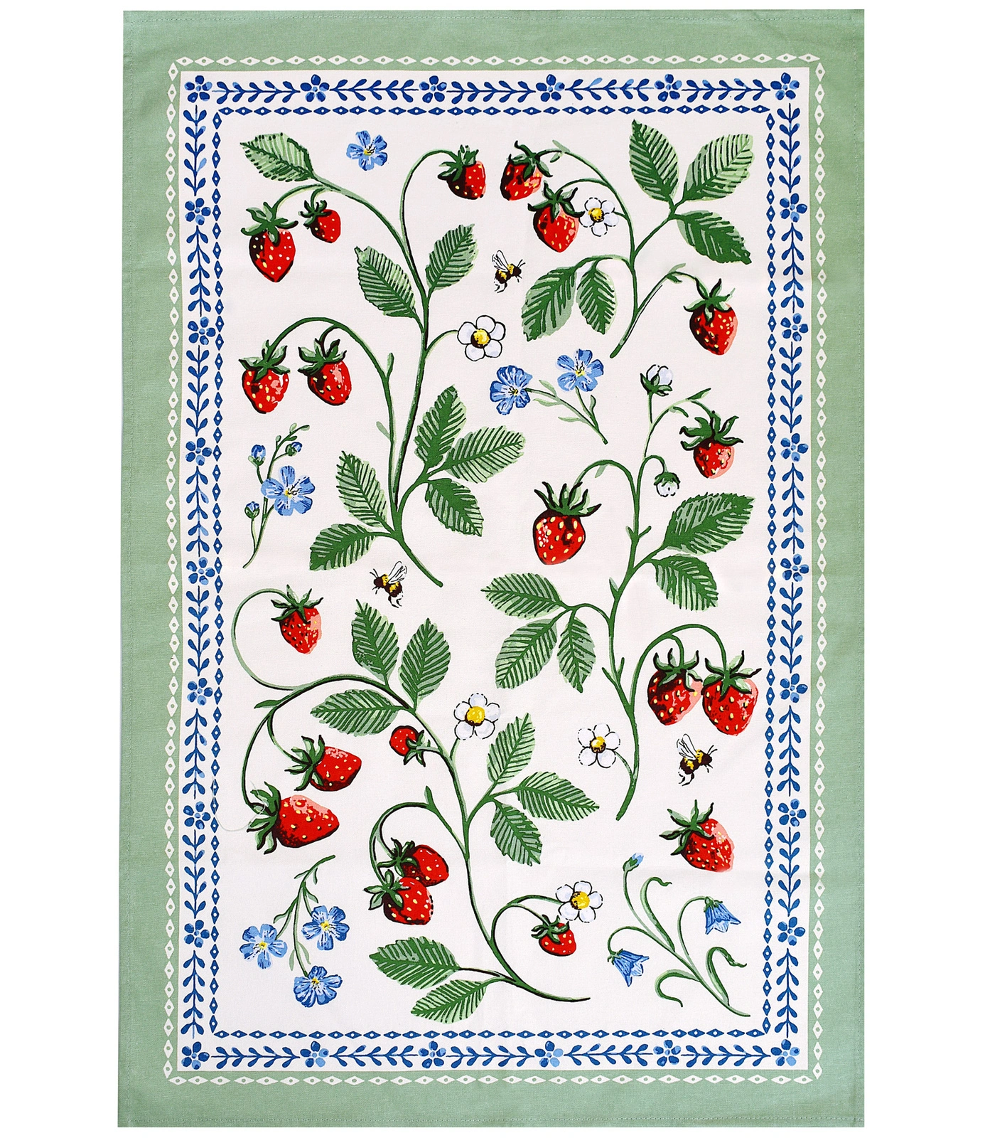 Ściereczka kuchenna z kolekcji Strawberry Patch brytyjskiej marki Ulster Weavers to połączenie sielskiego uroku z najwyższą funkcjonalnością. Akwarelowe motywy truskawek, pszczół i niezapominajek na kremowym tle, wprowadzają do współczesnej kuchni nostalgiczną atmosferę stylu vintage.