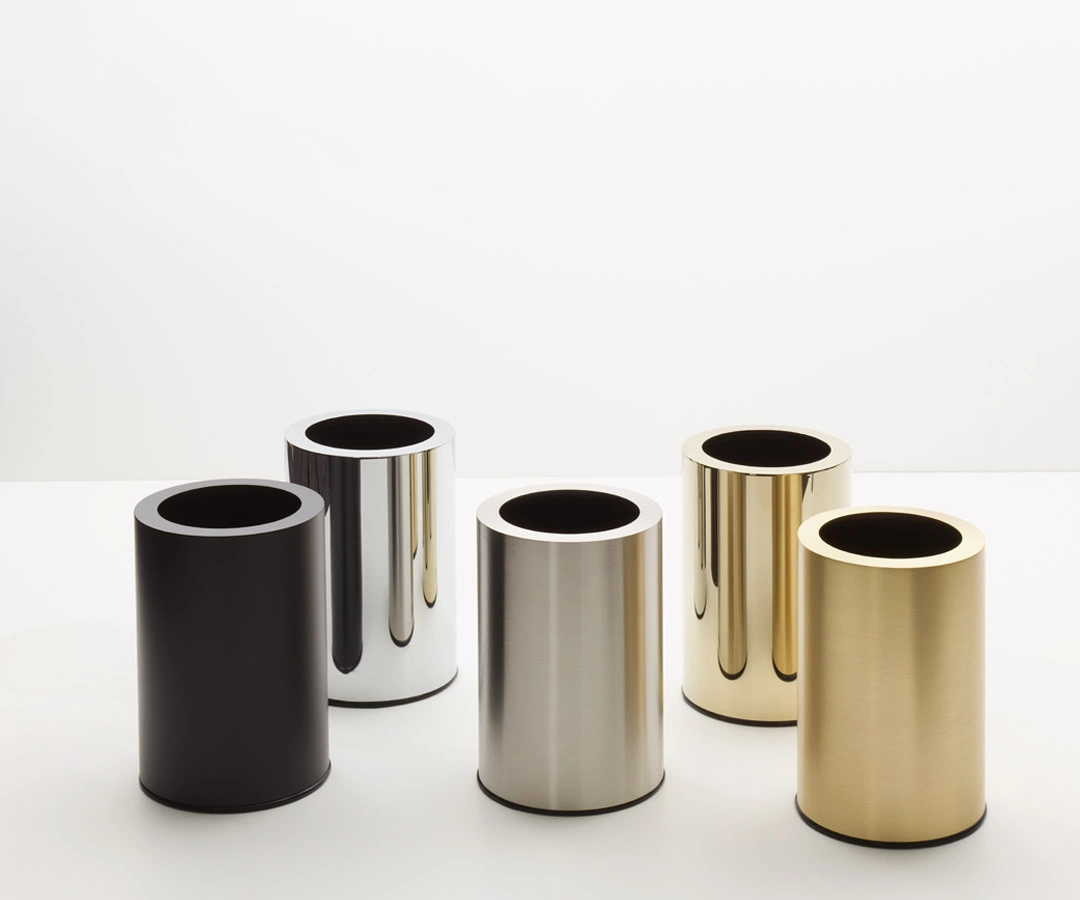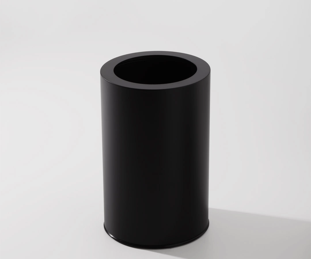 - Wolnostojący, otwarty kosz na śmieci z kolekcji ROOMS z marki Decor Walther o cylindrycznym kształcie. Posiada wewnętrzny wkład ze stali nierdzewnej. Wykonany z wysokiej jakości stali nierdzewnej w kolorze czarnym. Pojemność 8,5 l.