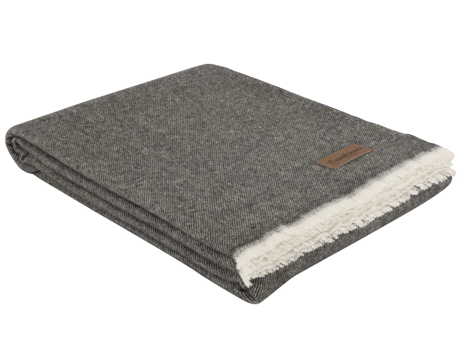 Pled wełniany Venezia szwajcarskiej marki Eskimo zachwyca cudownie delikatnym dotykiem dzięki użyciu szczególnie miękkiej wełny jagnięcej. W tym kocu widoczna jest prosta elegancja oraz wyrafinowane wykończenie krótkimi frędzlami szalowymi. Kolor ciemny szary. Idealny pled by otulić się wygodnie w na kanapie i ogrzać się w chłodny wieczór.