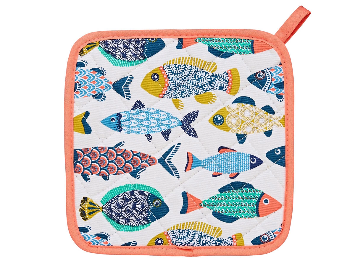 - Łapka kuchenna Aquarium z motywem wielobarwnych ryb. Idealna do ochrony blatu przed gorącymi garnkami. Wykonana w 100% z bawełny z wypełnieniem poliestrowym.