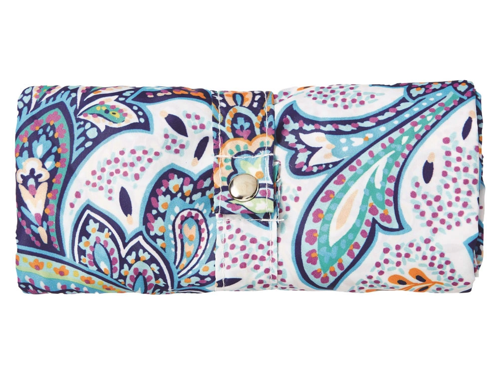 - Siatka na zakupy Italian Paisley marki Ulster Weavers w niebieski ornamentowy wzór. Dzięki łatwemu zwinięciu i zapięciu na guziki, może być przechowywana w torebce lub kieszeni.