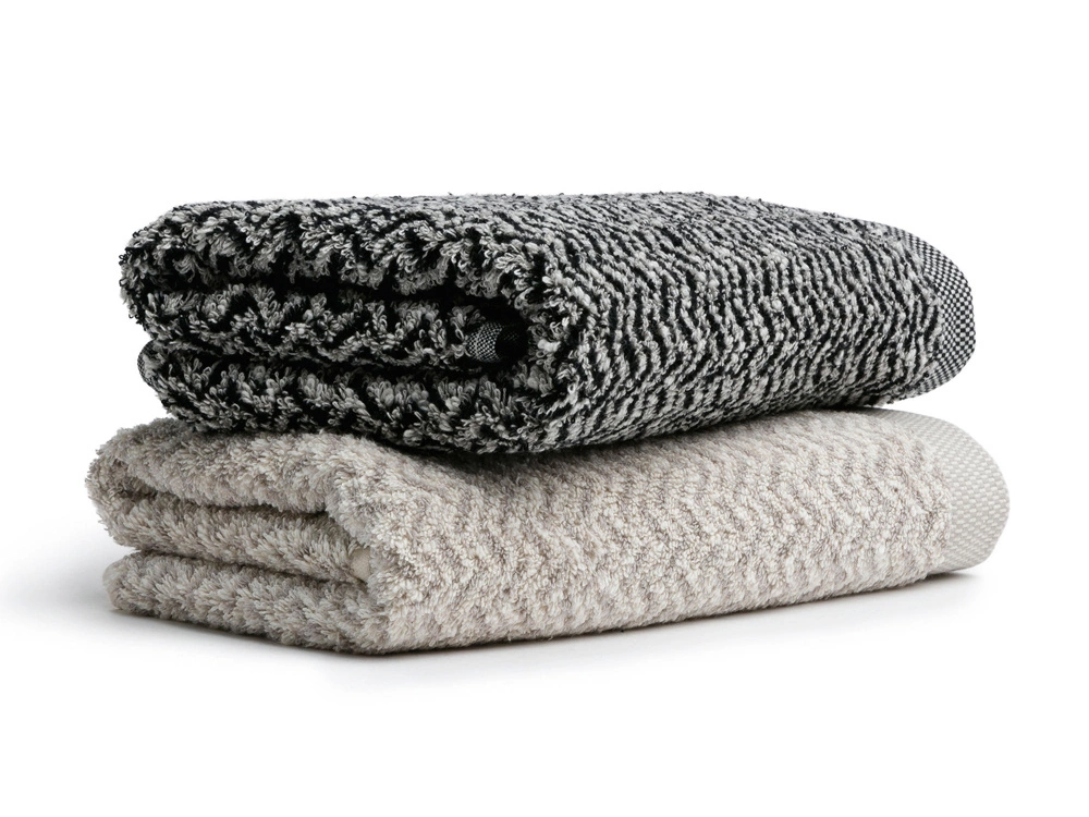 Ponadczasowa kolekcja ręczników Brooklyn Fischgrat w kolorze beżowym. Intrygująca struktura materiału - boucle połączona z ekskluzywnym połączeniem bawełny, wiskozy i lnu.