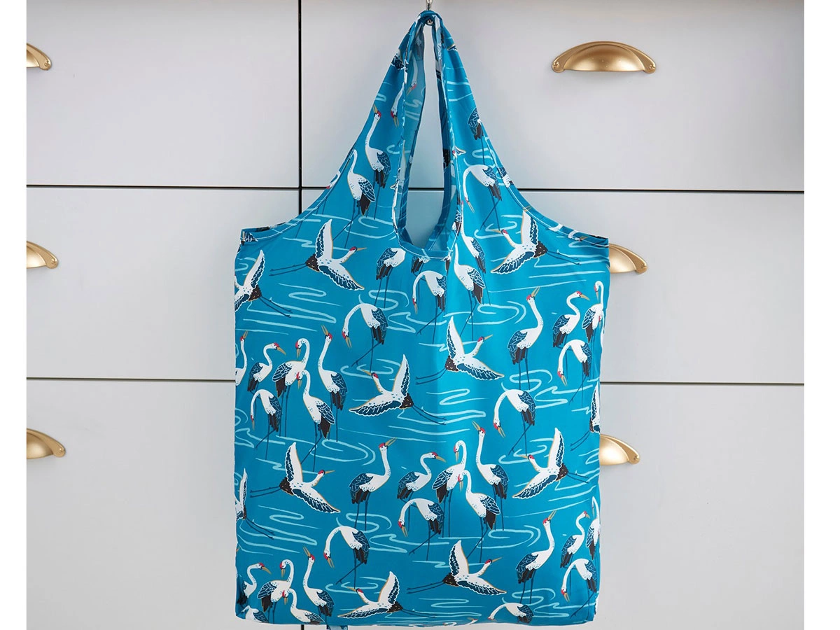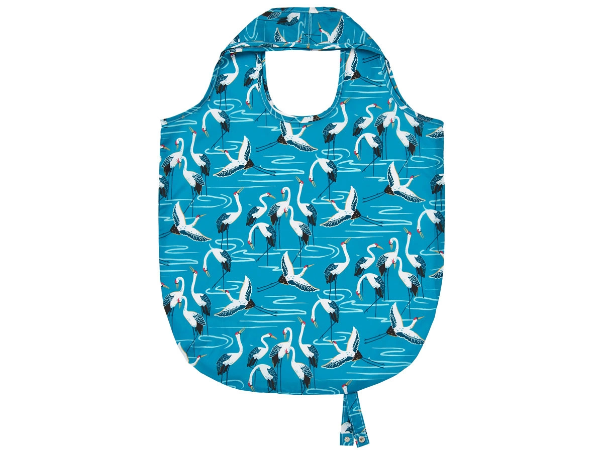 Siatka na zakupy Cranes marki Ulster Weavers. Dzięki łatwemu zwinięciu i zapięciu na guziki, może być przechowywana w torebce lub kieszeni.