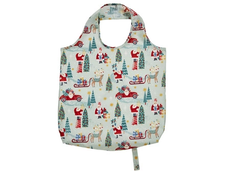 Świąteczna siatka na zakupy Tiss The Season marki Ulster Weavers. Dzięki łatwemu zwinięciu i zapięciu na guziki, może być przechowywana w torebce lub kieszeni.