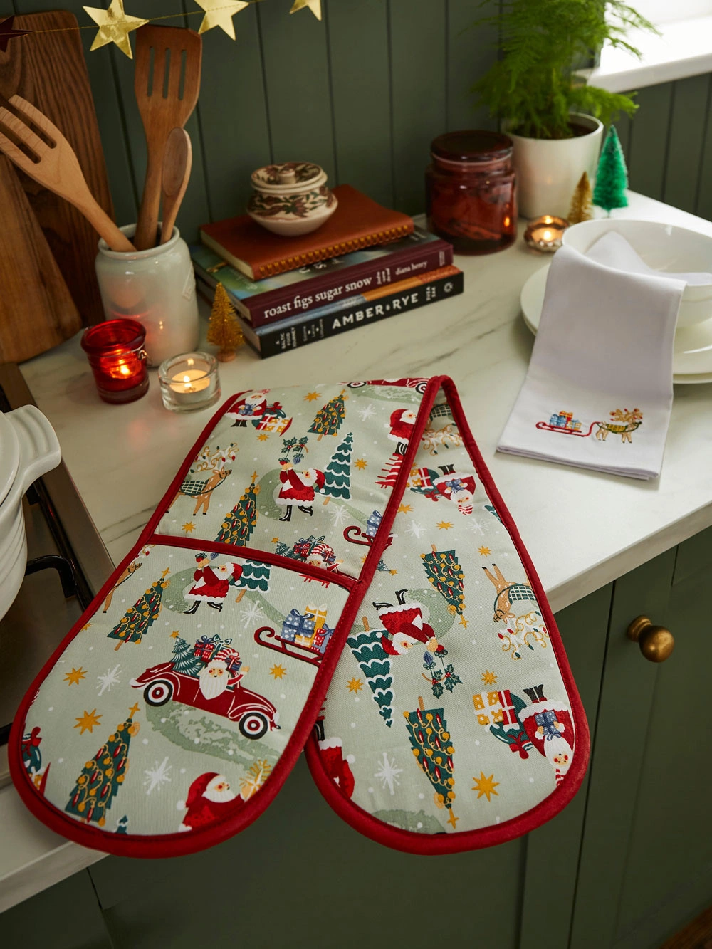 - Świąteczna, podwójna rękawica kuchenna z kolekcji Tis The Season. Chroni dłonie przed gorącymi blachami. Wykonana w 100% z bawełny z wypełnieniem z poliestrowym dla ochrony.