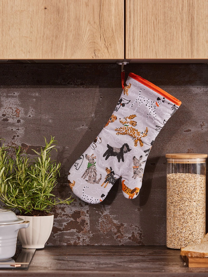 Rękawica z kolekcji Dog Days marki Ulster Weavers. Stanowi ochronę dla dłoni przed gorącymi talerzami i tacami w kuchni. Wykonana w 100% z niebielonej bawełny z wypełnieniem poliestrowym.