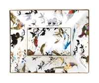 Kolekcja Garden's Birds marki Roberto Cavalli. Motyw ptaków zaczerpnięty z słynnej kolekcji modowej projektanta z 2016 roku. Kolekcja wykonana z porcelany kostnej, ręcznie ozdabiana złotymi oraz platynowymi elementami. Kolekcja Garden's Birds to jedna z kolekcji porcelany Roberto Cavalli, które zostały opracowane specjalnie, by łączyć je z innymi wzorami, np. z kolekcją Silk Gold oraz kolekcją Python Gold. Ze względu na niezwykle bogate wzory, projektant zakłada łączenie ich w różnych kombinacjach, by uzyskać niebanalny charakter nakrycia stołu. Porcelana kostna (Bone China) uznawana jest za najbardziej luksusowy typ porcelany. Jest cieńsza, bardziej oporna na wyszczerbienia i zarysowania niż tradycyjna porcelana. Jest również bardziej „transparentna” dzięki czemu do jej ozdabiania można wykorzystać większą gamę kolorystyczną. Bardzo gładka, nie porowata struktura sprawia, że jest to produkt dla najbardziej wymagających Klientów.